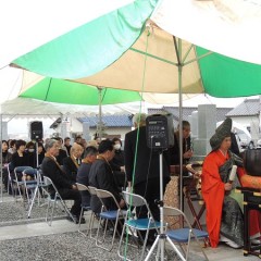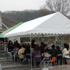 テントを張り、雨の中の法要になりました。