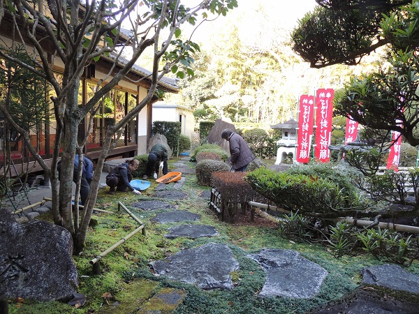 朝から冷え込む中、総代・観音講の皆様で清掃準備作業を行い、