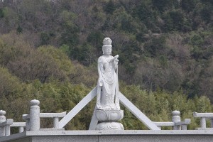 外面上部の観音様の像が地震で倒壊する危険性があるため