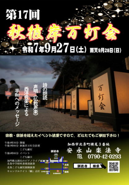 9月27日(土)第17回秋彼岸万灯会を開催します。